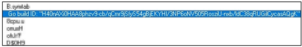 The unique build ID of the GoLang ransomware is shown below.