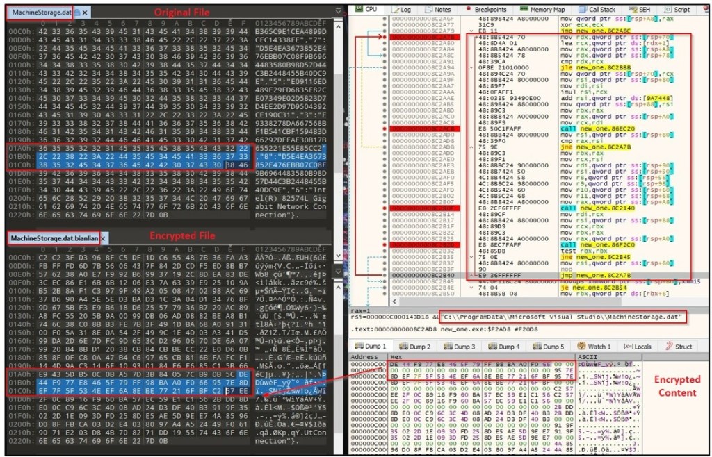 For encryption, the malware divides the file content into 10 bytes chunks. First, it reads 10 bytes from the original file, then encrypts the bytes and writes the encrypted data into the target file. Dividing the data into small chunks is a method to evade detection by Anti-Virus products.