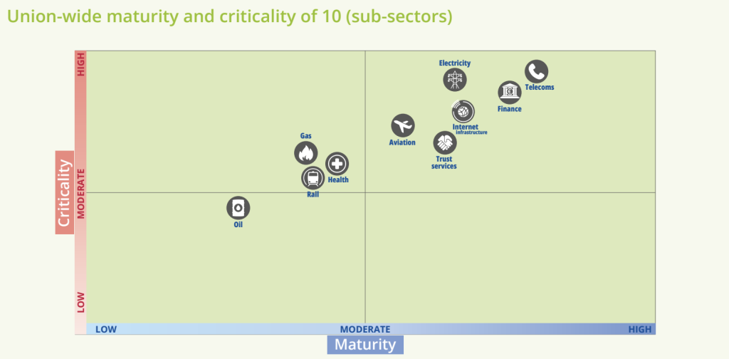 Figure 3. Cybersecurity of top 10 critical sectors in EU (Source: ENISA)