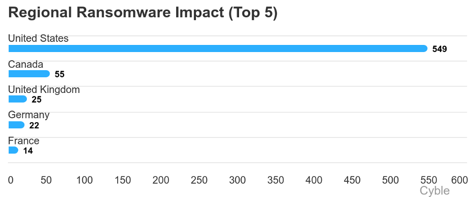 The previous high for ransomware attacks recorded by Cyble was May 2023, when 544 victims were claimed by ransomware groups on their Tor-based data leak sites (DLS), which the groups use as part of their extortion tactics of “naming and shaming” victims and threatening to release data to pressure victims into paying ransoms. Not all ransomware victims are published on DLS sites, but it’s a useful tool for ransomware trend analysis.