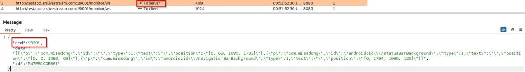 Once the Greenbean malware has acquired the necessary permissions, it initiates a WebSocket connection using the URL “hxxp://testapp[.]srslivestream.com:19001/monitor/ws” to establish communication between the server and the client.