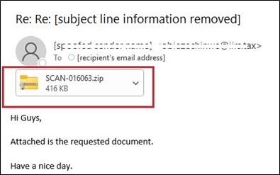 The Matanbuchus infection starts through spam emails containing a ZIP attachment. This ZIP attachment contains an HTML file.