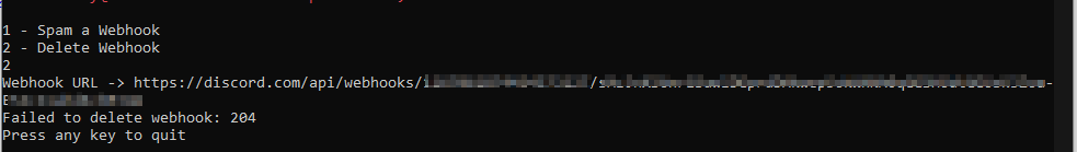 If the user selects the delete option, the stealer requests the user to provide the targeted webhook URL for removal, as shown in the figure below.