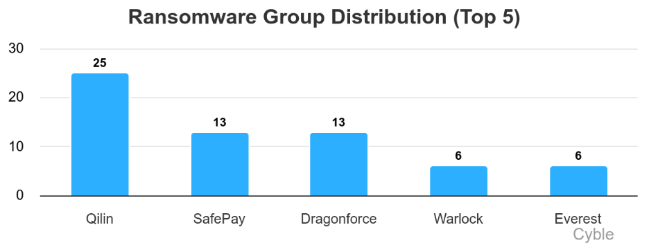 In the META region, Qilin, Warlock, and INC were the top ransomware threats, while Australia’s eight attacks were spread among seven groups. Qilin was the only group claiming more than one attack in Australia.