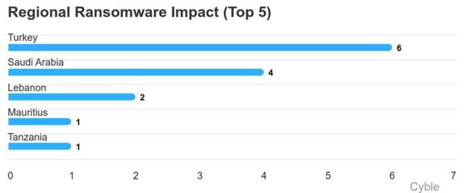 In the APAC region, Thailand, Japan, and Singapore each had six ransomware victims, followed by India and the Philippines (chart below).