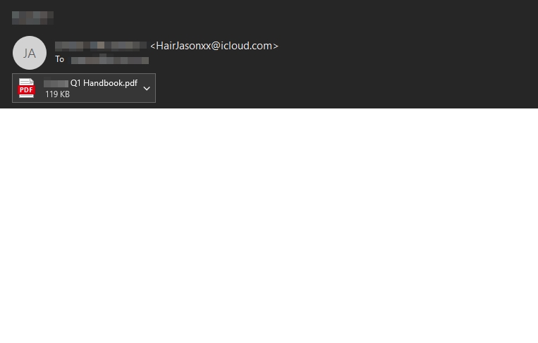 One of the initial samples analysed was a PDF masquerading as an employee handbook, purportedly sent from the organization’s HR department (see Figure 1).
