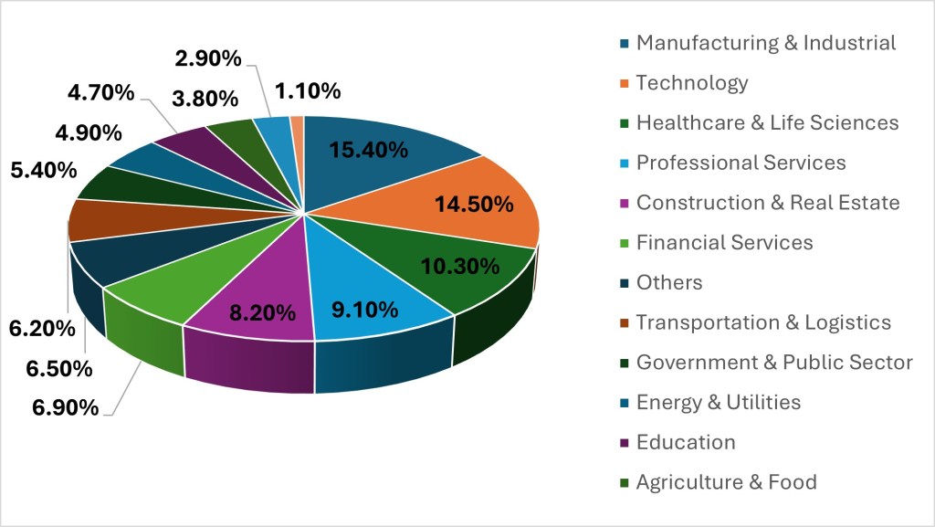 Entities within the Technology, Healthcare, Manufacturing, and BFSI (Financial) industries have emerged as the primary targets of this campaign, which has so far impacted organizations across more than 70 distinct sectors (see Figure 10).