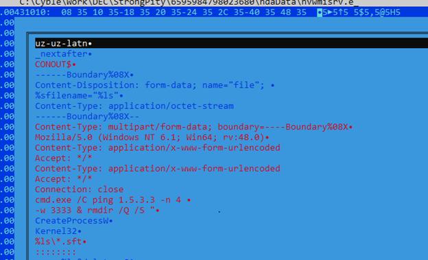 - These hidden .sft files are sent to the C&C server through a POST request and are then removed from the disk-based on further C&C command. The Exfiltrate module has commands to delete the .sft files after being sent to the hacker C&C server, as seen in the figure below.