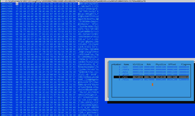 Upon execution of the trojanized installer, it extracts and drops encrypted payloads, which is part of its resource section, as shown in the figure below