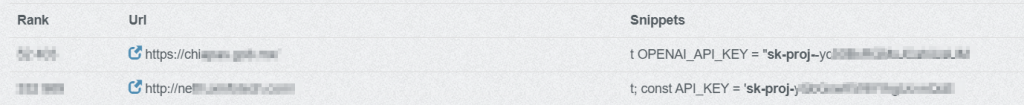 Despite this, ChatGPT API keys are frequently embedded directly in JavaScript files, front-end frameworks, static assets, and configuration files accessible to end users. In many cases, keys are visible through browser developer tools, minified bundles, or publicly indexed source code. An example of the keys hardcoded in popular reputable websites is shown below (see Figure 1)