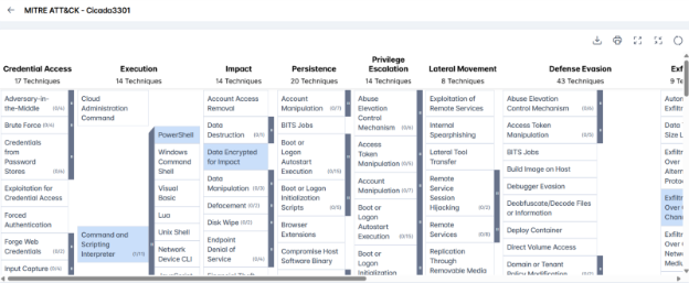 - Exfiltration (TA0010) – Exfiltration Over C2 Channel (T1041): Data is stolen by embedding it within existing command and control communication channels.
